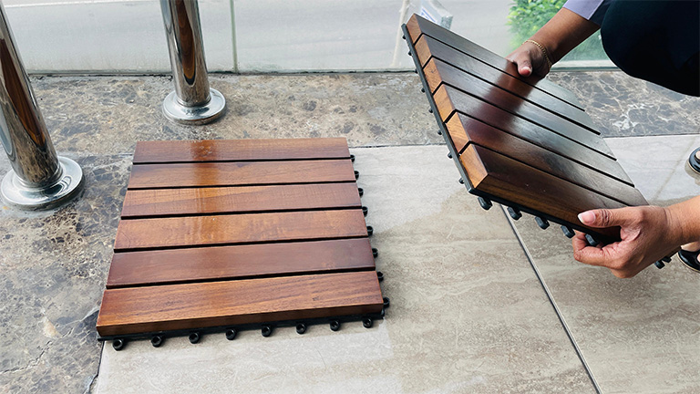 ICC Timber Deck Tiles are designed to transform outdoor areas with the perfect blend of style, strength, and simplicity. Crafted from high-quality natural timber, they bring warmth, elegance, and a timeless finish to patios, balconies, rooftops, walkways, and pool surrounds. The smart interlocking system makes installation effortless and completely DIY-friendly—no tools or expertise required. Their modular design allows you to create custom patterns and easily replace individual tiles when needed, offering both flexibility and practicality. Built to withstand the elements, Deck Tiles are weather-resistant, handling moisture, UV rays, and temperature changes with ease. They are also treated to resist fading, mold, and mildew, ensuring long-lasting performance with minimal maintenance. Crafted from responsibly sourced timber, these tiles offer a sustainable flooring solution that combines durability with eco-conscious design. Stylish, versatile, and cost-effective, Timber Deck Tiles are the smart choice for upgrading any outdoor living space.